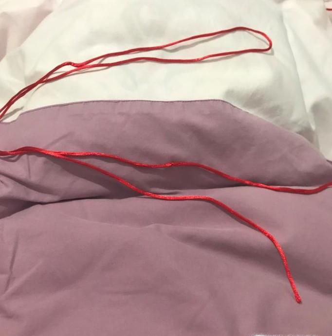 01、剪去一段约1.2米的绳子,双折做一个纽扣结,留出一小段绳子,作为之后手链的扣眼(绳子尽量留短些,之后会被扣子挤大,孔太大的话手链容易掉)