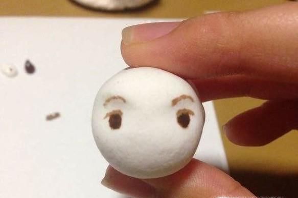 01、首先取出一块准备好的橡皮泥,把它搓成椭圆形,然后用黑色的彩色笔在上面画上眉笔、眼睛和鼻子,当然也可以用黑色的橡皮泥捏,因为画的比较方便。