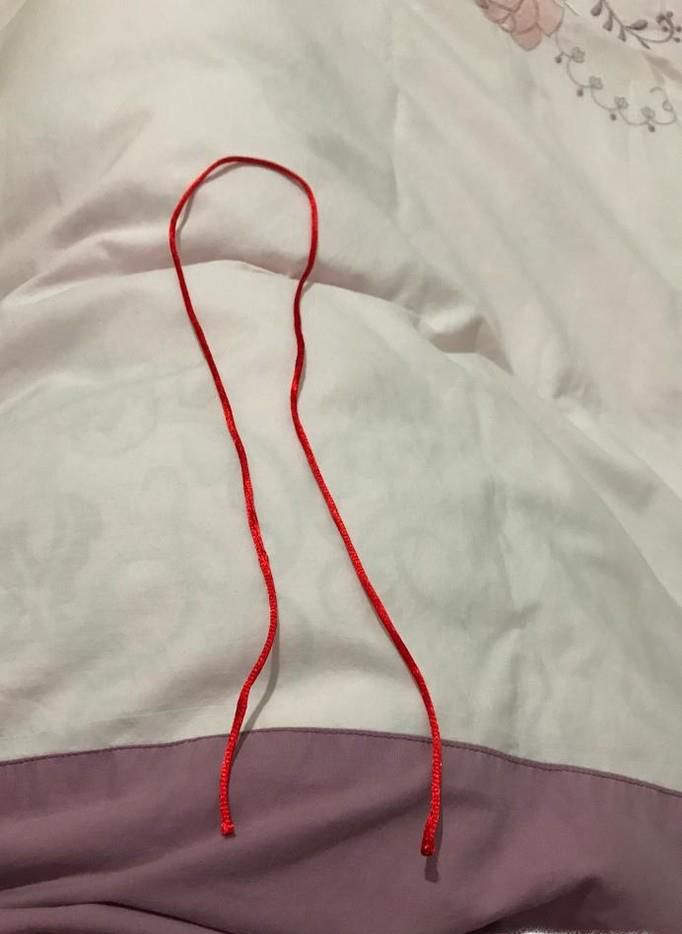 01、准备一条绳子(也可以是自己即将完工的项链),将绳子两端的线尾如图重叠,我们接下来要做的就是分别绕线。