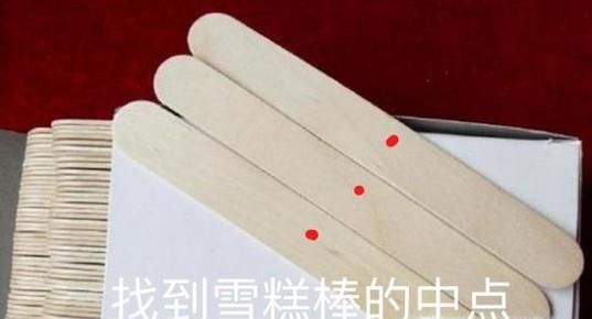 01、先找到雪糕棒的中点,然后用刀尖挖一个牙签能卡住的小洞。