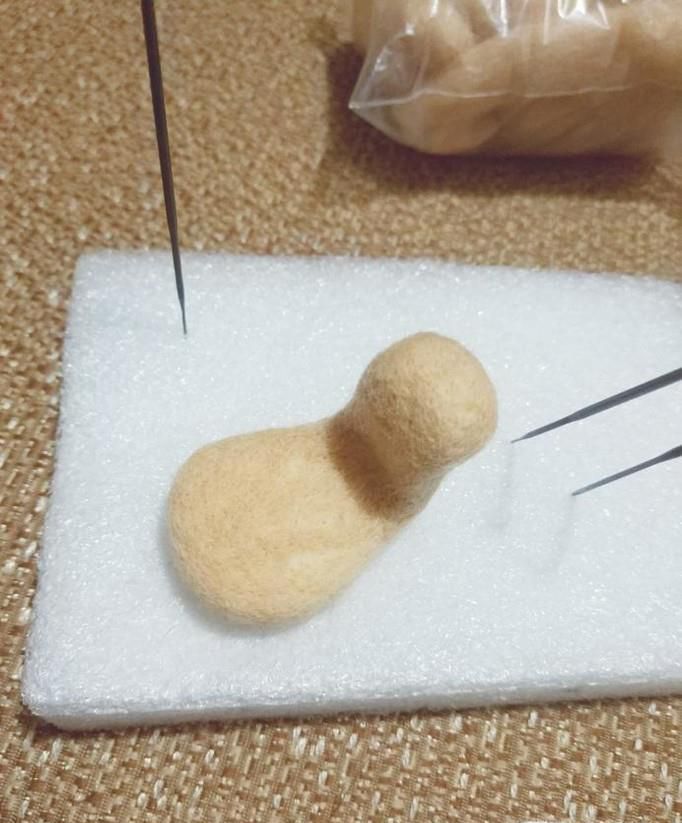 02、取浅黄色羊毛戳在身体下部分。