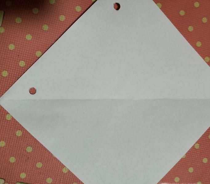 01、准备一张正方形的卡纸。大家最好用绿色的卡纸,小编暂时没有,就用白色的卡纸。将卡纸对折成三角形然后打开,中间留一条折痕。