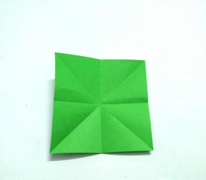 01、把正方形纸分别沿对角线和中心线对折,形成米字痕。