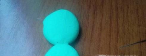 01、先取下一块绿色的粘土,捏成上小下大的“8”子形状。然后再取下一块白色的粘土放在绿色粘土上面。