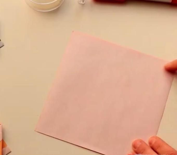 01、首先准备一张彩色的正方形纸,然后沿对角线对折两次,如图所示。