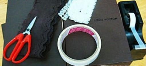 03、然后我们再在最上方的盒子周围贴上双面胶,然后再将我们准备好的装饰花边贴上,贴好后如图所示。