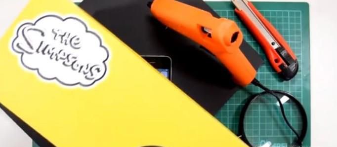 01、准备好材料,鞋盒,手机,支架,胶水,锯,刀等。