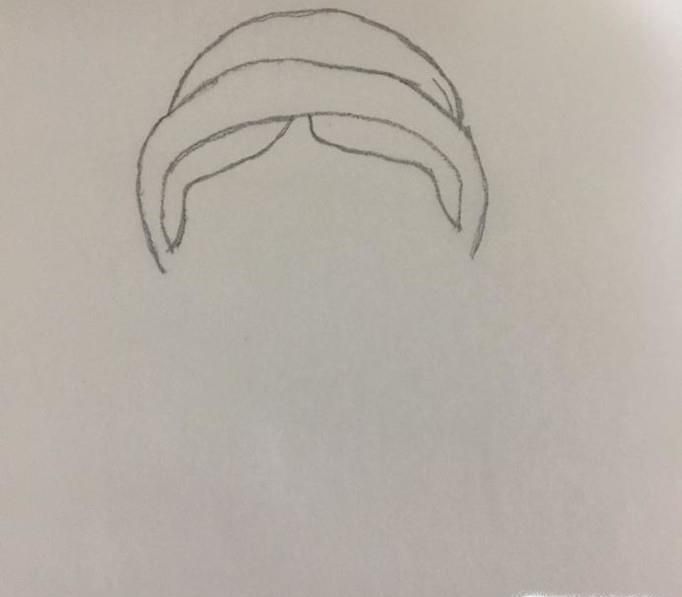 01、首先我们用铅笔在A4纸上画出圣诞老人的帽子,如下图所示。画圣诞老人的帽子的时候要注意的是左右对称。