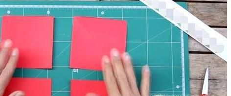01、将红色的卡纸裁剪为四张大小相同的正方形。