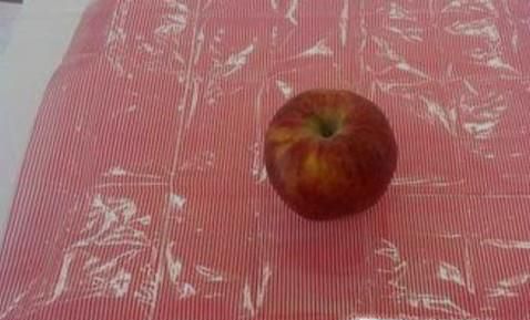 02、把包装纸的四个角一齐拉上来,完整的包裹住苹果。