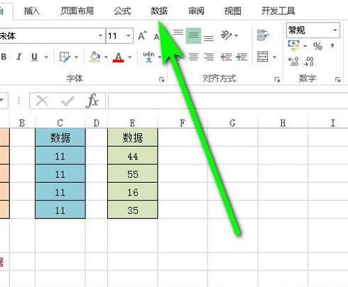 02、选择好要显示汇总结果的单元格;鼠标移到菜单栏这里,点击数据选项卡。下面展开的功能组中,再点击:合并计算