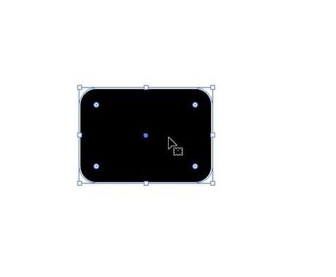 02、按V键,切换到选择工具,点击一下圆角矩形,选中它。我们看圆角矩形外部有定界框,四个角内部这里,各有一个小圆。