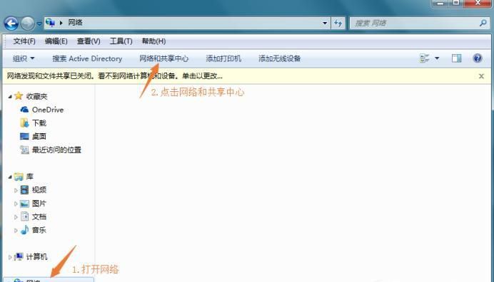 01、点开桌面的“计算机”,在左侧“网络”点击“打开网络和共享中心”