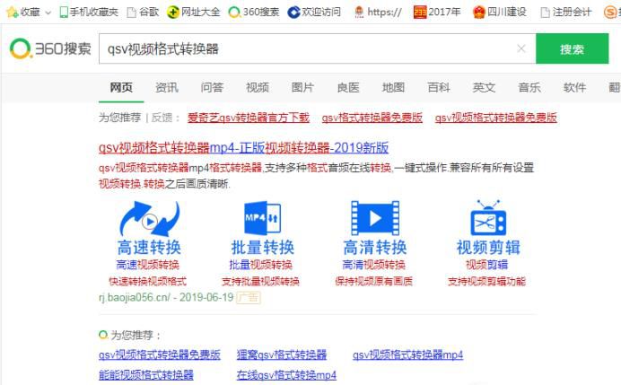 首先打开网页浏览器,搜索“qsv视频格式转换器”,如下图所示: