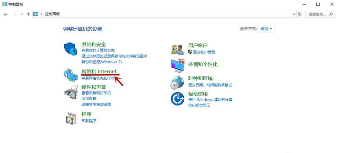 01、首先,我们打开“控制面板”,进入“网络和Internet”。