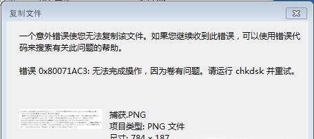 在日常的工作学习中,我们经常会用到U盘拷贝文件。当我们将文件复制到U盘时,有时会提示错误0x80071AC3:无法完成操作,因为卷有问题,请运行chkdsk并重试。那么如果我们碰到错误0x80071AC3该如何处理呢?