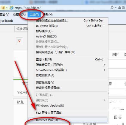 01、首先打开Internet浏览器,然后再点击菜单栏的“工具”,在弹出的下拉菜单中选择“Internet 选项”。