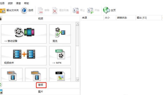 01、首先我们打开格式工厂应用程序,在主页页面上选择音频选项。
