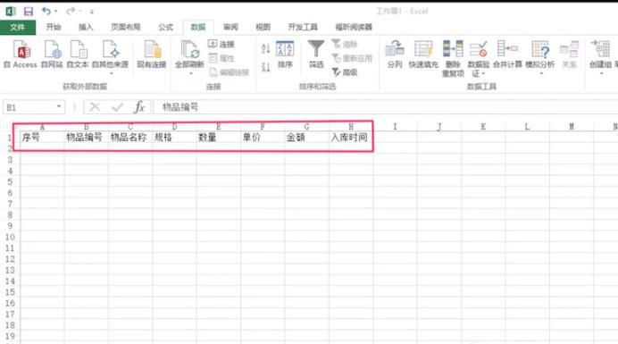 04、在库存表中,我们需要设置序号、编号、谷歌、物品名称和数量几个类目,单元格的设置也要符合相应类目的输入习惯。