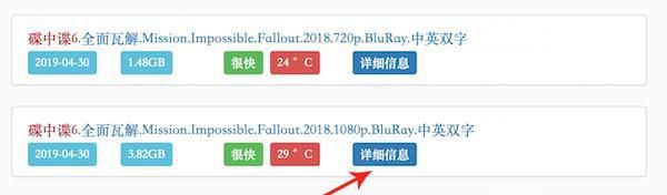 02、这里我们例如搜索碟中谍6,在搜索结果中,我们就能够看到很多番号链接,点击“详细信息”进入相应的详情页面。