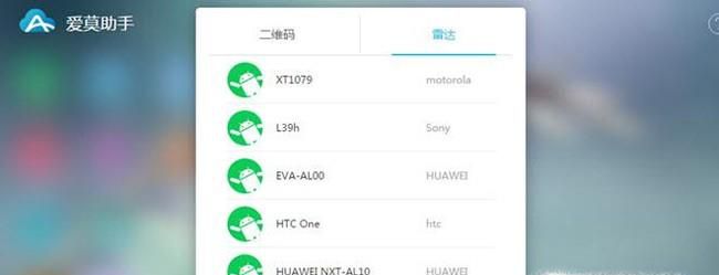 02、进入爱莫助手官网,雷达探测手机后点击手机名称连接。