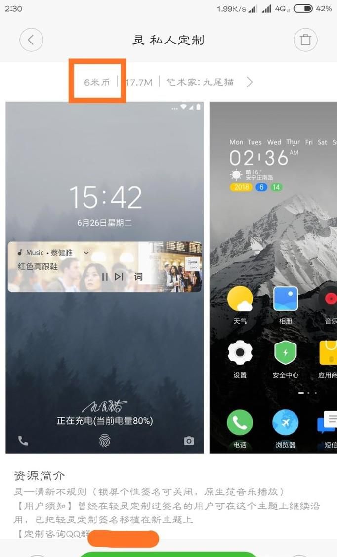 01、我们随意下载了一个付费主题,可以看到是6米币的,然后点击试用。