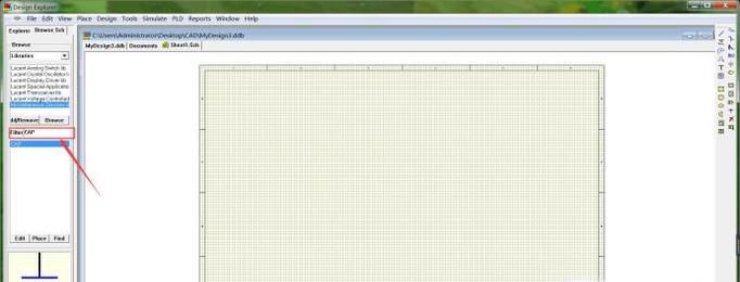 01、从元件库面板中。直接输入“CAP”,可以查找到电容的元件符号。