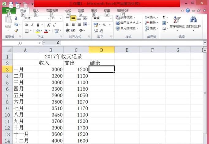 07、公式输入完成后,按”enter“键,就会看到第一个月的结余已经算出来了