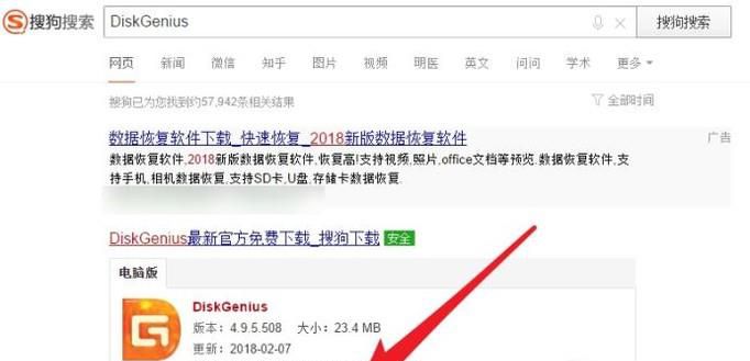 01、打开搜狗搜索,输入DiskGenius关键字查看结果。