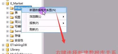 01、首先打开SQL SERVER的管理工具,找到要操作的数据库,然后展开文件夹,选择数据库关系图,然后右键单击,选择新建数据库关系图,如下图所示