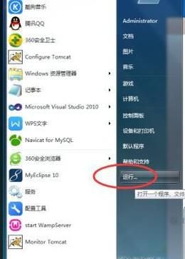 点击电脑左侧的“开始”图标,选择【运行】,如下图所示: