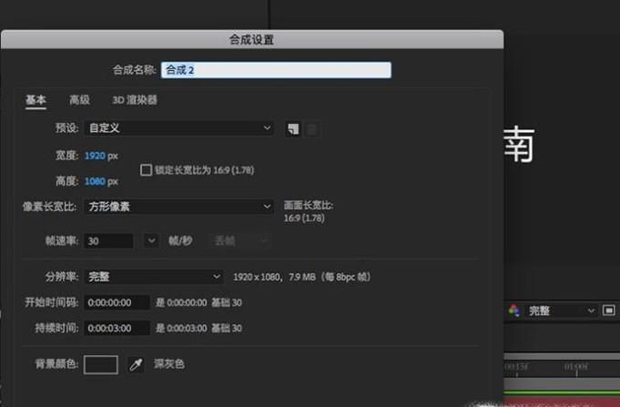 01、打开电脑中的AE软件,ctrl+N先新建一个合成,时间不用太长,帧速率为30f就行了。