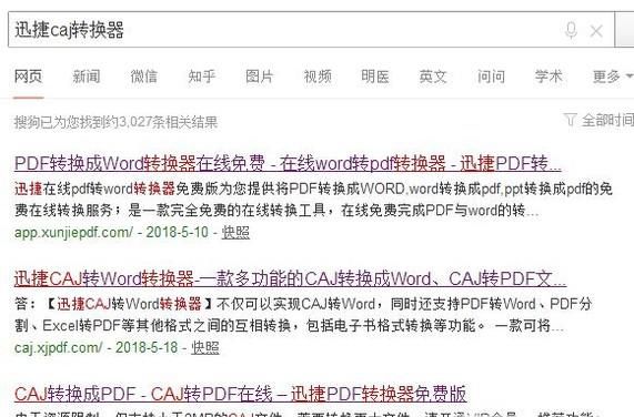 01、在搜狗浏览器搜搜迅捷caj转换器,然后找到它并点击进入进行一系列操作啊