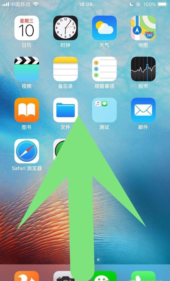 01、来到苹果手机的主界面往上滑动,如下图所示。