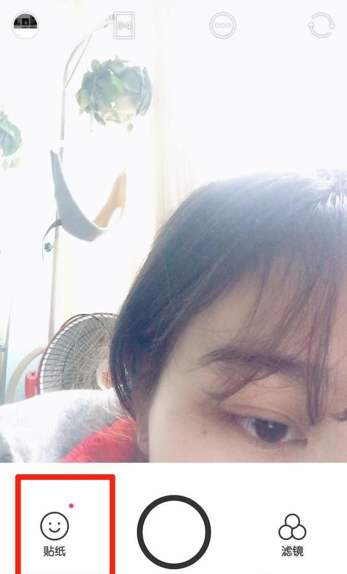 01、【拍照功能】打开界面之后,点击“贴纸”,可以选择各式各样的面饰及特效。