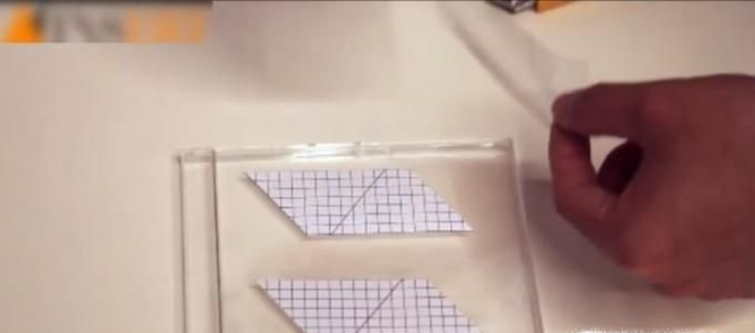 02、将CD盒沿纸的边缘裁下,裁出四块等腰梯形。