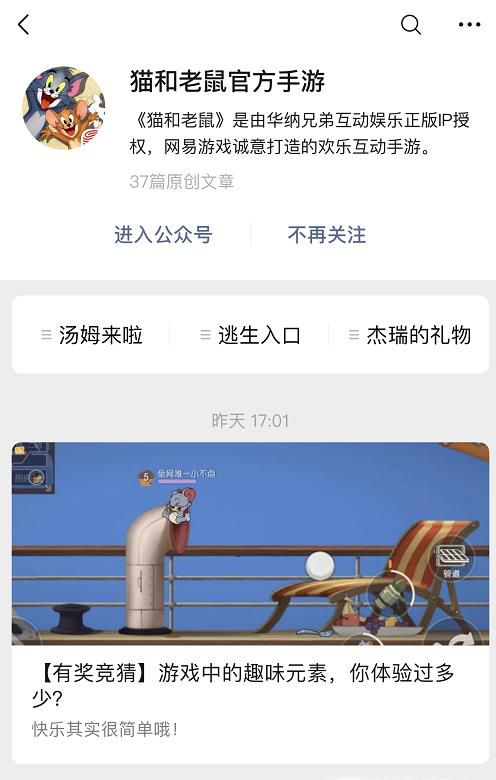 01、打开微信app,在添加朋友的页面点击【公众号】,在搜索框中输入“猫和老鼠官方手游”,点击关注。
