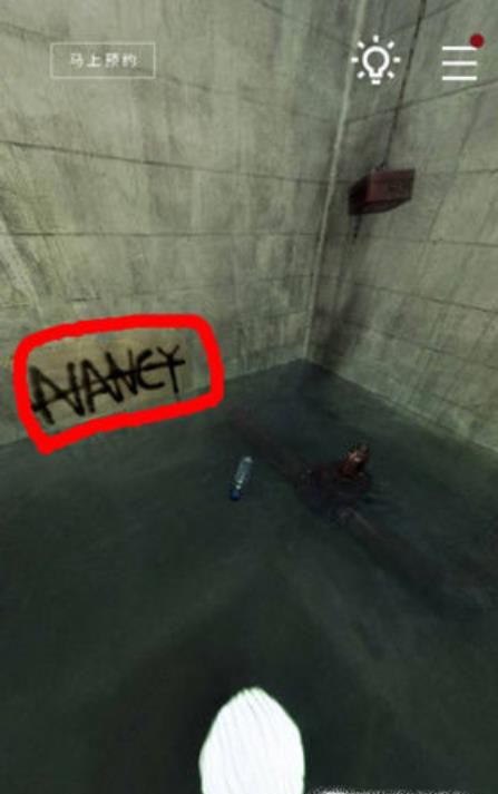 01、进入游戏,剧情过后,主角马上面临危险,在墙上找到nancy字样。