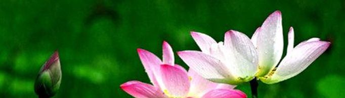 33、灼灼荷花瑞,亭亭出水中。一茎孤引绿,双影共分红。色夺歌人脸,香乱舞衣风。——杜公瞻《咏同心芙蓉》