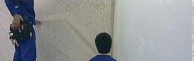 06、最后贴墙布,两人合作则速度快一些,尤其是贴阴角处,两人两头拉直由上至下,由里至边刮贴更好。贴的过程中,用干净的湿毛巾擦掉多余胶浆。贴完整屋后进行全面检查,发现有气泡、鼓泡用家用蒸汽烫斗烫一下即可解决。