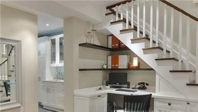 01、我们可以将小复式楼楼梯下面设置成书柜。书柜的旁边可以还有书桌,这样既能够节约楼梯下面的空间,又能够形成一个比较安静的读书区域。可以说是一举两得。